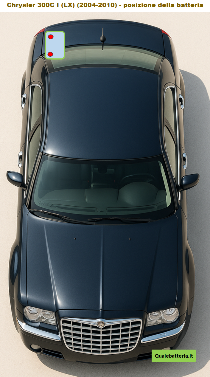 Un fatto interessante sulla Chrysler 300 C è che si tratta di un modello che combina stile americano con tecnologia europea, grazie alla collaborazione con Daimler. Questo si riflette anche nei requisiti per la batteria, che devono essere compatibili con standard diffusi in Europa, come le dimensioni specifiche dell’involucro e i terminali.